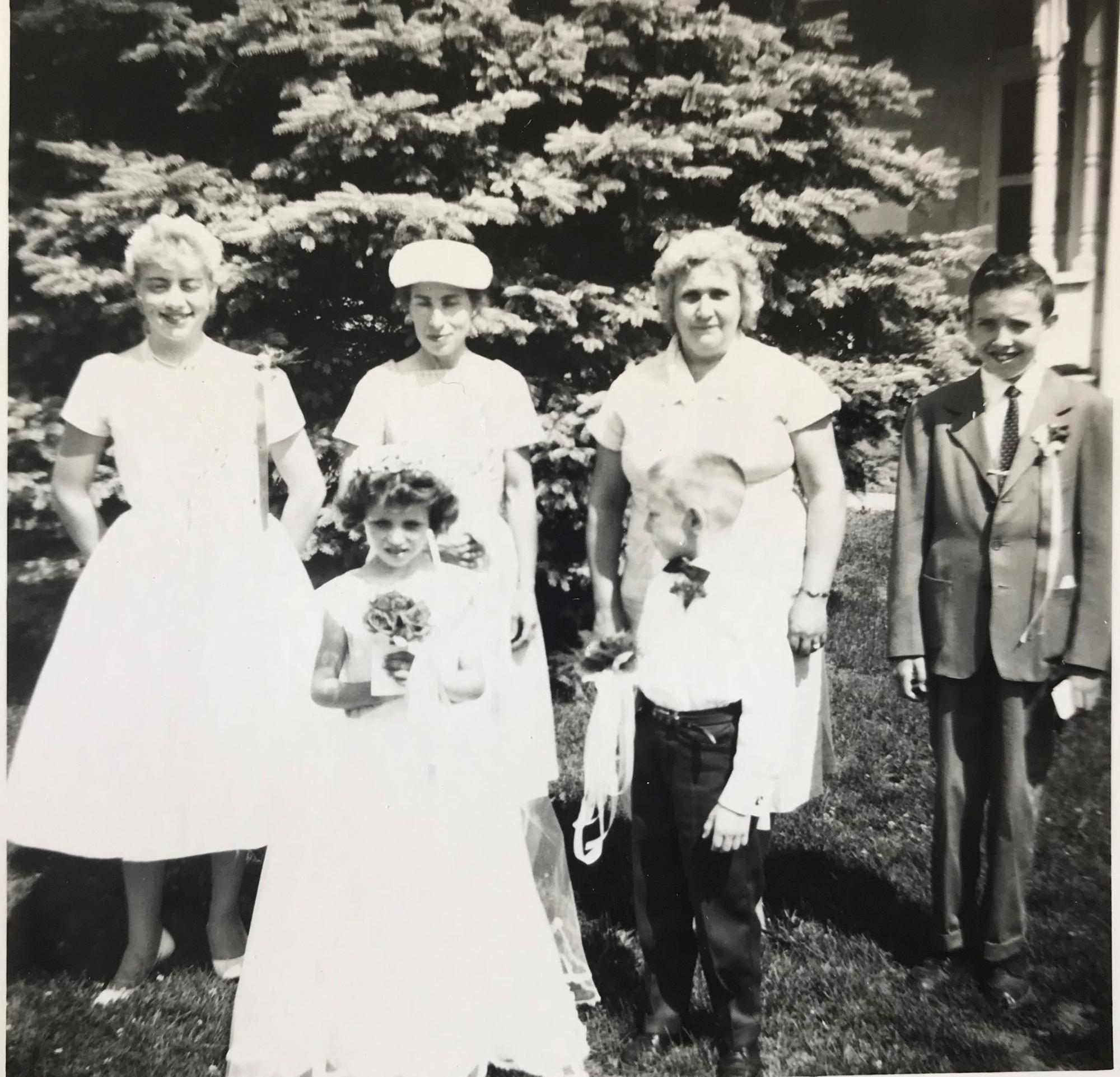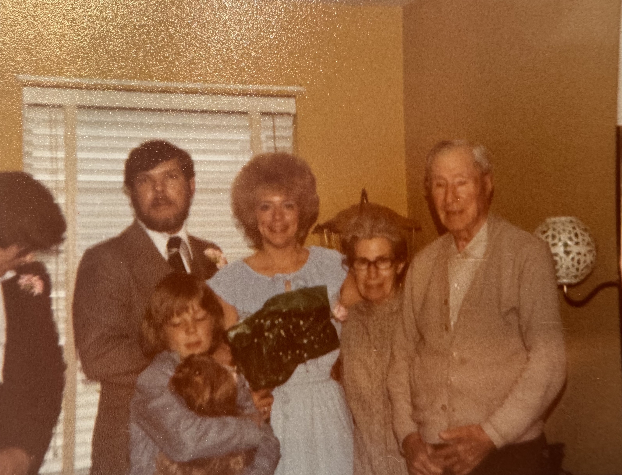 Connie's Wedding Day with Wendell Johnston (yorkie Wendy, Bob Johnston and Dad Hozie)