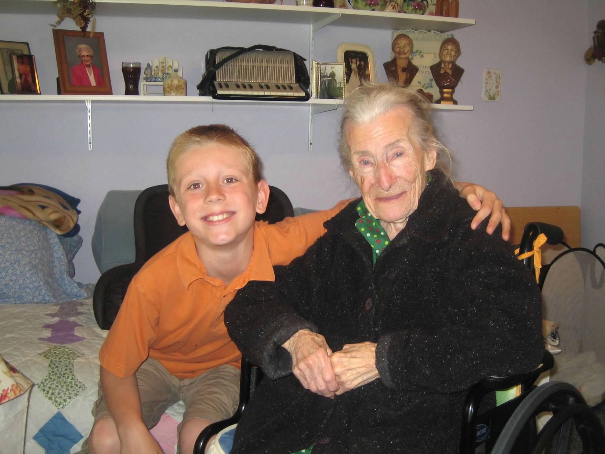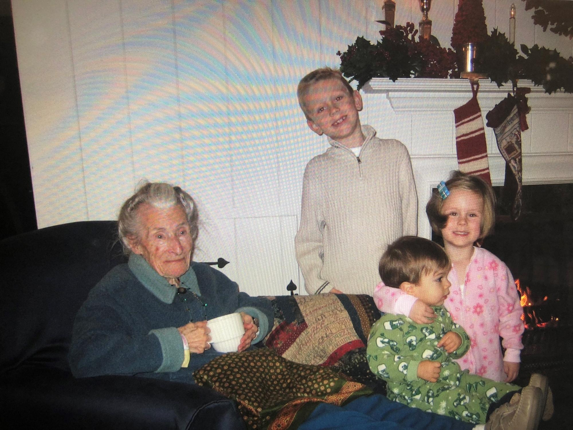Great Grandma Momma Helen with great grandchildren Carter, Peyton, and Tristan Spearry